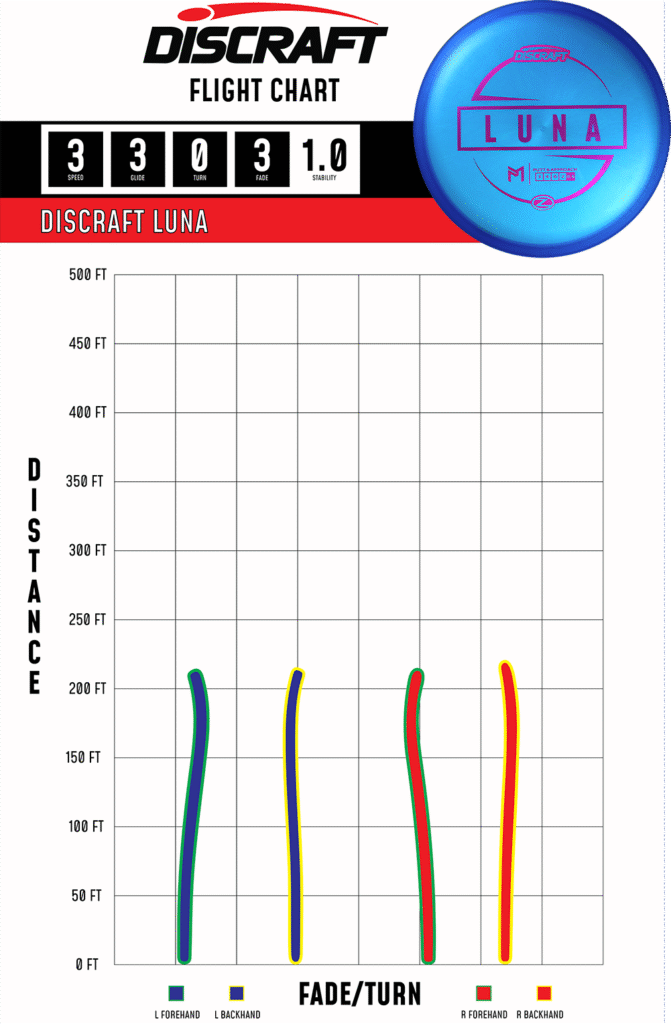 - Glide (3): The Luna offers a “moderate-heavy” loft. It won’t stay in the air forever like a dedicated glide-disc, which is actually a benefit for accuracy—it goes where you point it and then sits down.