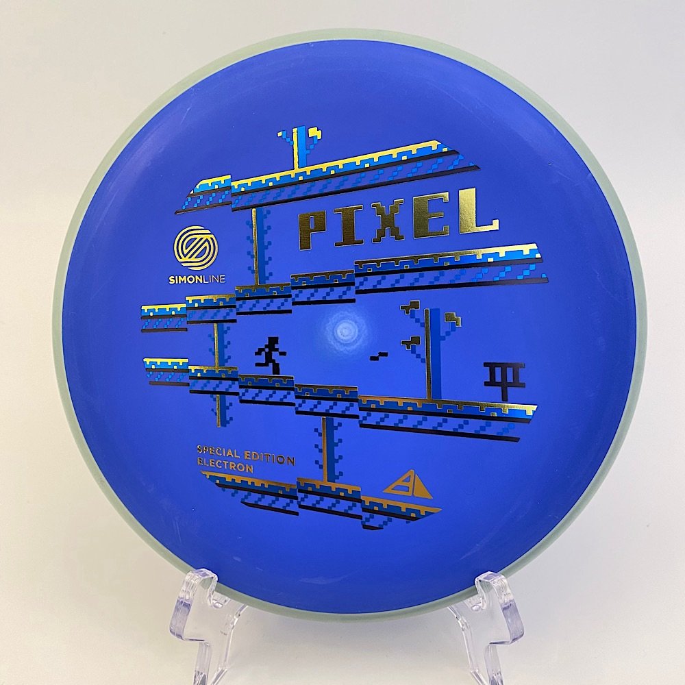 Designed by the 7x Disc Golf Pro Tour winner Simon Lizotte, the Pixel is perfect for players looking for a straight flight and consistent results. Not to mention, its vibrant blue and turquoise color with a striking black-blue-gold stamp makes it a true collector’s item! 🥇 Whether you’re a seasoned pro or just starting your disc golf journey, the Axiom Electron Pixel is here to help elevate your game. Don’t miss out on this incredible putter!