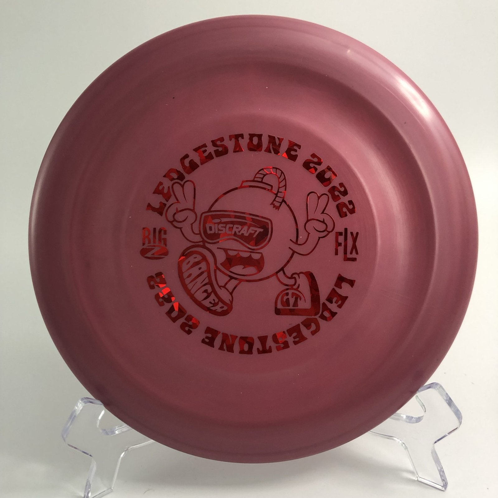 Disc: Discraft Big Z FLX Banger GT – Ledgestone 2022 (170-172g) Profile: flat Stiffness: soft Condition: New (storage wear) Color: purple Stamp: red shatter reflective stamp (see picture)