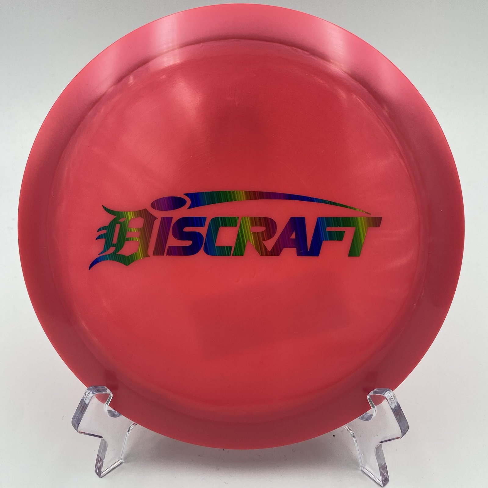 Disc: Discraft Big Z Thrasher – Barstamp (170-172g) Profile: medium Stiffness: Medium soft Condition: New (storage wear) Color: pink-red, rainbow stamp (see picture)