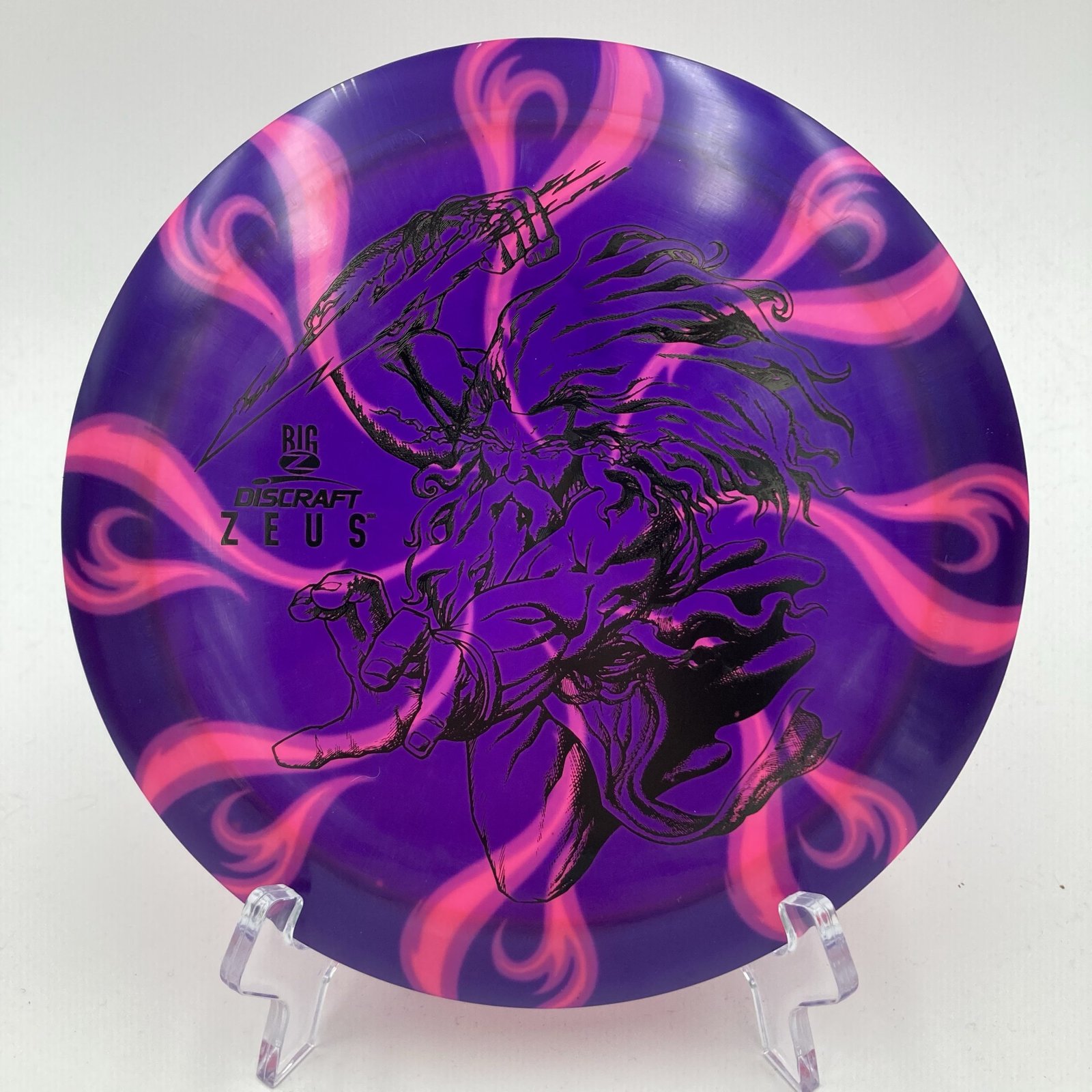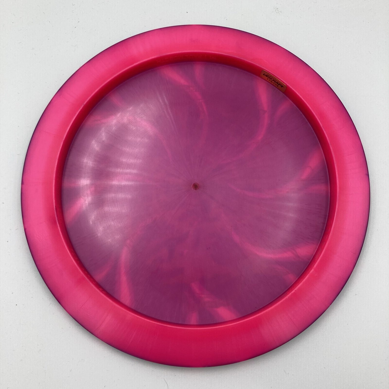 Crafted in premium Big Z plastic for that grippy, durable feel, this flat-profile disc has a soft stiffness that molds to your hand during those intense rounds. At 173-174g, it’s beat-in ready yet flies like new. But what sets this one apart? A stunning one-of-a-kind Dark Star dye job from Discs by Drake—vibrant pink base swirling with black and pinkish cosmic patterns, accented by a black stamp. Minor storage wear and ink drop-out from the dyeing process add to its unique charm, but it’s in pristine new condition overall. 🌟
