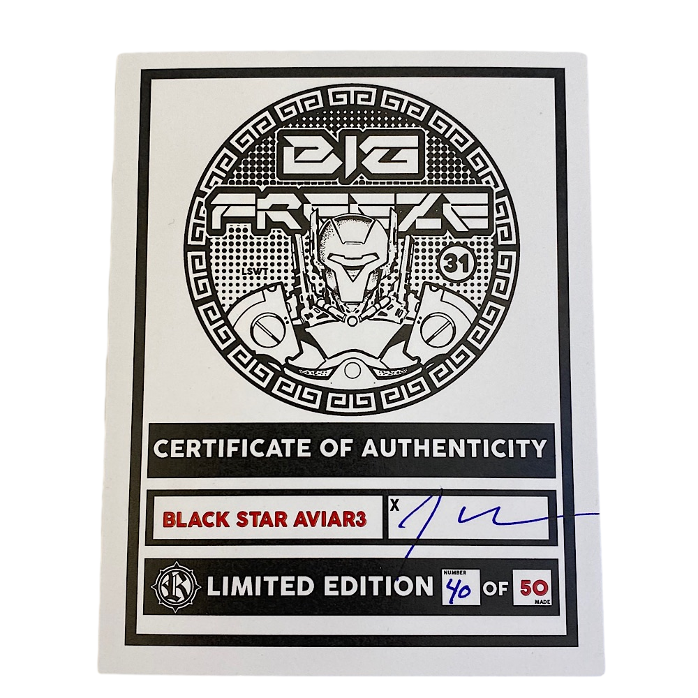 Introducing the stunning Black Star Aviar3 – Big Freeze, a must-have for any disc golf enthusiast! 🌟 This remarkable putter is crafted by Innova and is part of a limited edition run, with only 50 pieces available, each one meticulously signed by the talented artist Les White. This specific piece is numbered 40/50, making it a rare find that collectors will treasure! 🎨✨