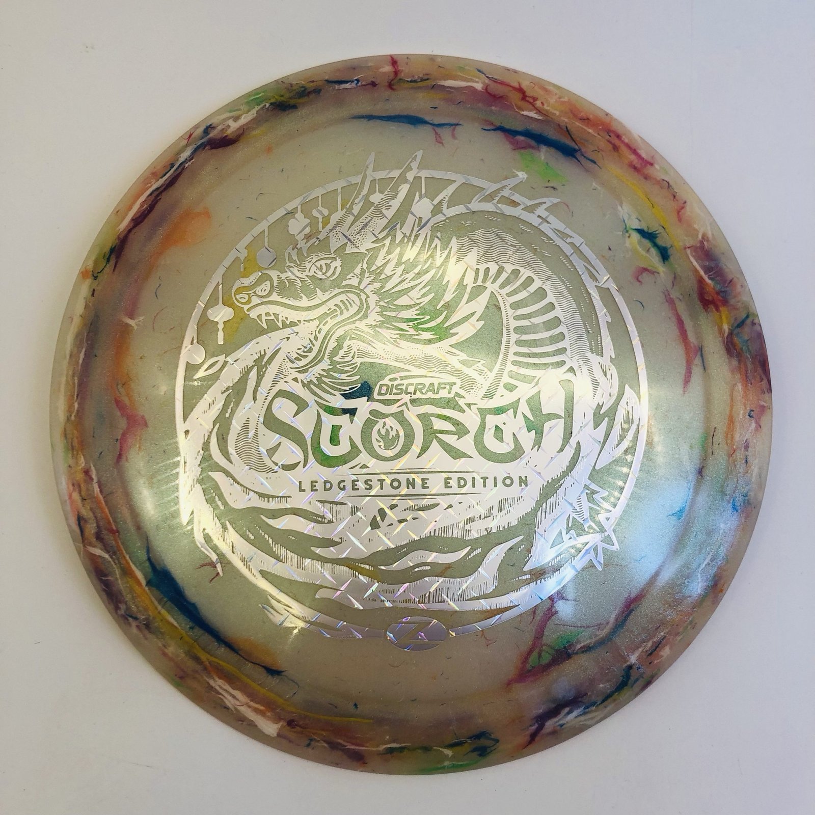 The Scorch is built for effortless distance, offering a controllable high-speed turn that helps players unlock extra glide without overpowering the disc. It finishes with a dependable fade that provides consistency while still allowing for full-flight shot shaping. The Colorshift Jawbreaker Z FLX plastic blends flexible grip with eye-catching color-changing effects and added durability for confident throws in all conditions. This run is finished with a striking fire-breathing dragon stamp that brings aggressive energy to match the Scorch’s explosive flight.