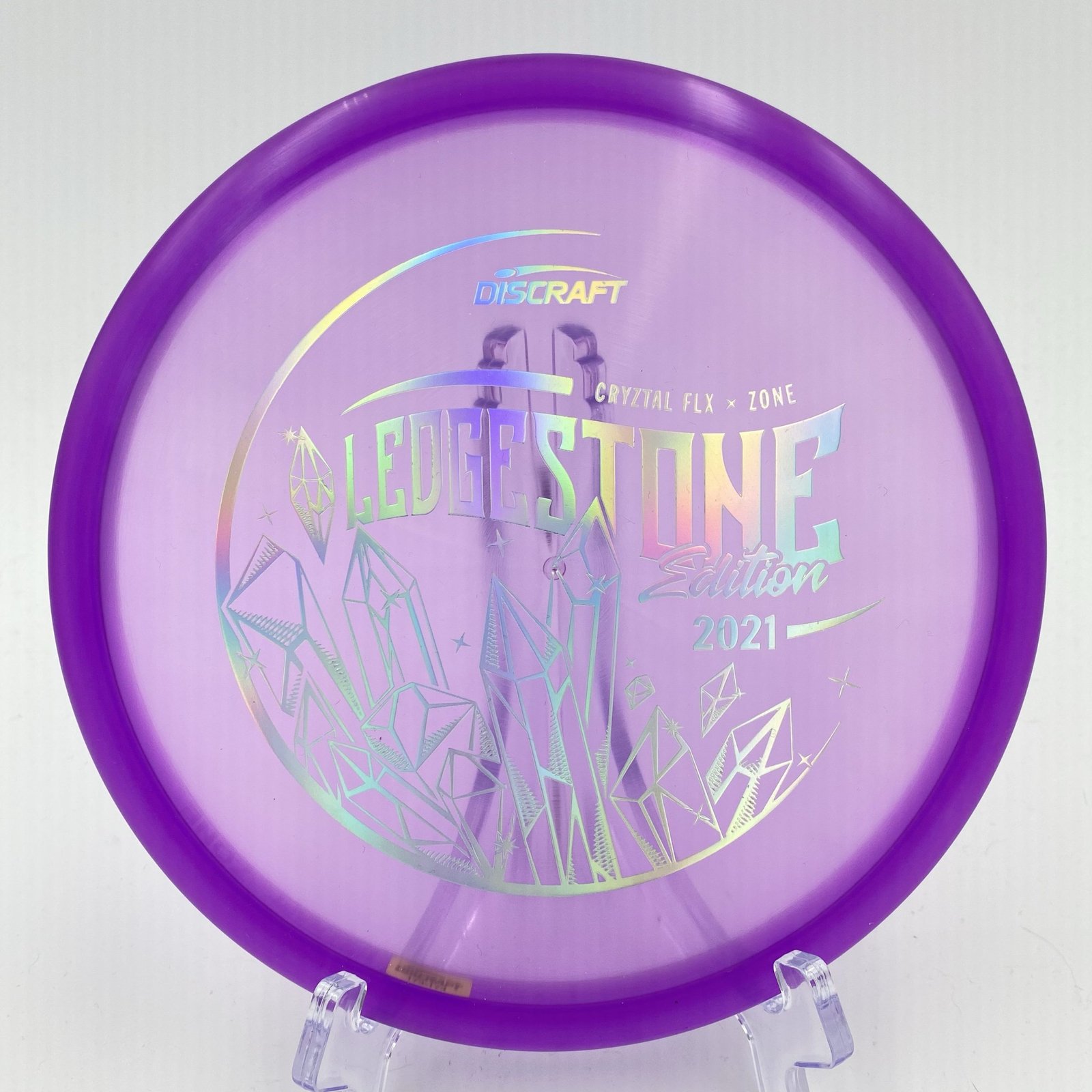 Disc: Discraft CryZtal FLX Zone – 2021 Ledgestone Edition (173-174g) Profile: flat Stiffness: soft Color: purple (silver holographic reflective stamp), See picture