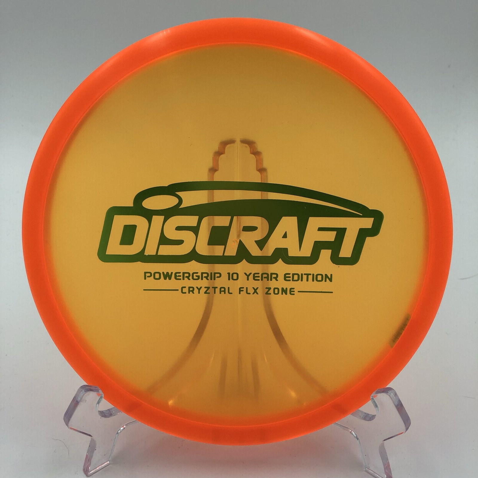 Introducing the Discraft Cryztal FLX Zone – Powergrip 10 Year Edition! 🎉 This special putter is not just a trophy for the collectors; it’s a functional disc that brings performance and feel together in one stunning package. With its Speed of 4, Glide of 3, Turn of 0, and a Fade of 3, this disc delivers a reliable flight path that you can depend on for any approach or putting situation! 🥏