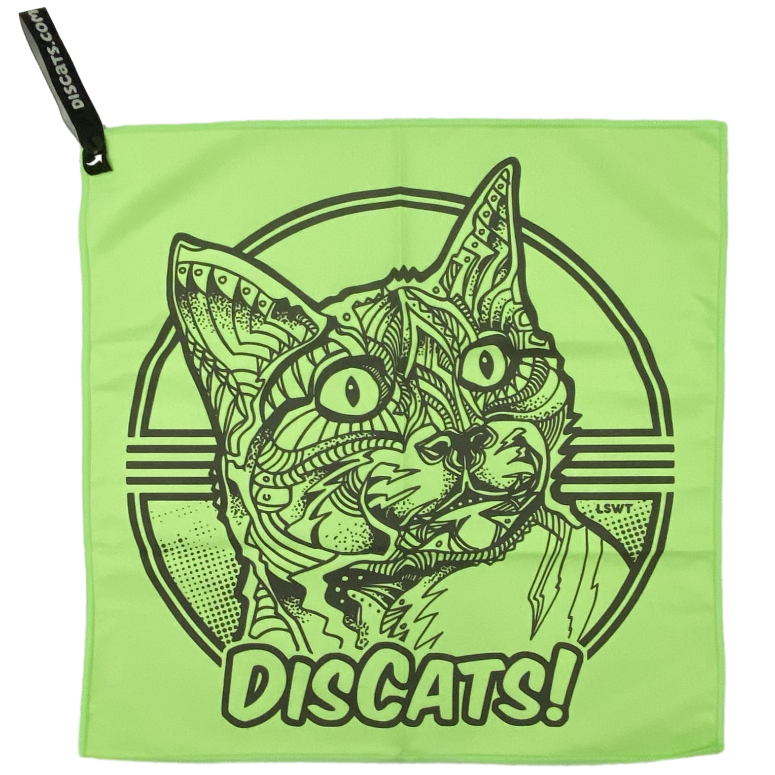 Disc Golf towels are essential for keeping your golf discs clean and dry when you are out on the course. The DisCats Disc Golf Towel is made from high absorption micro fabric (80% polyester, 20% polyamide) which works to remove dust, dirt and debris at the microscopic level. This towel doesn’t collect leaves and other debris if dropped on the ground. Great absorbency, is lint free, and is machine washable. Our towels come in sealed bag, keeping it clean and dry until you are ready to use it. When your towel gets too dirty, simply wash it in cold water and hang to dry.