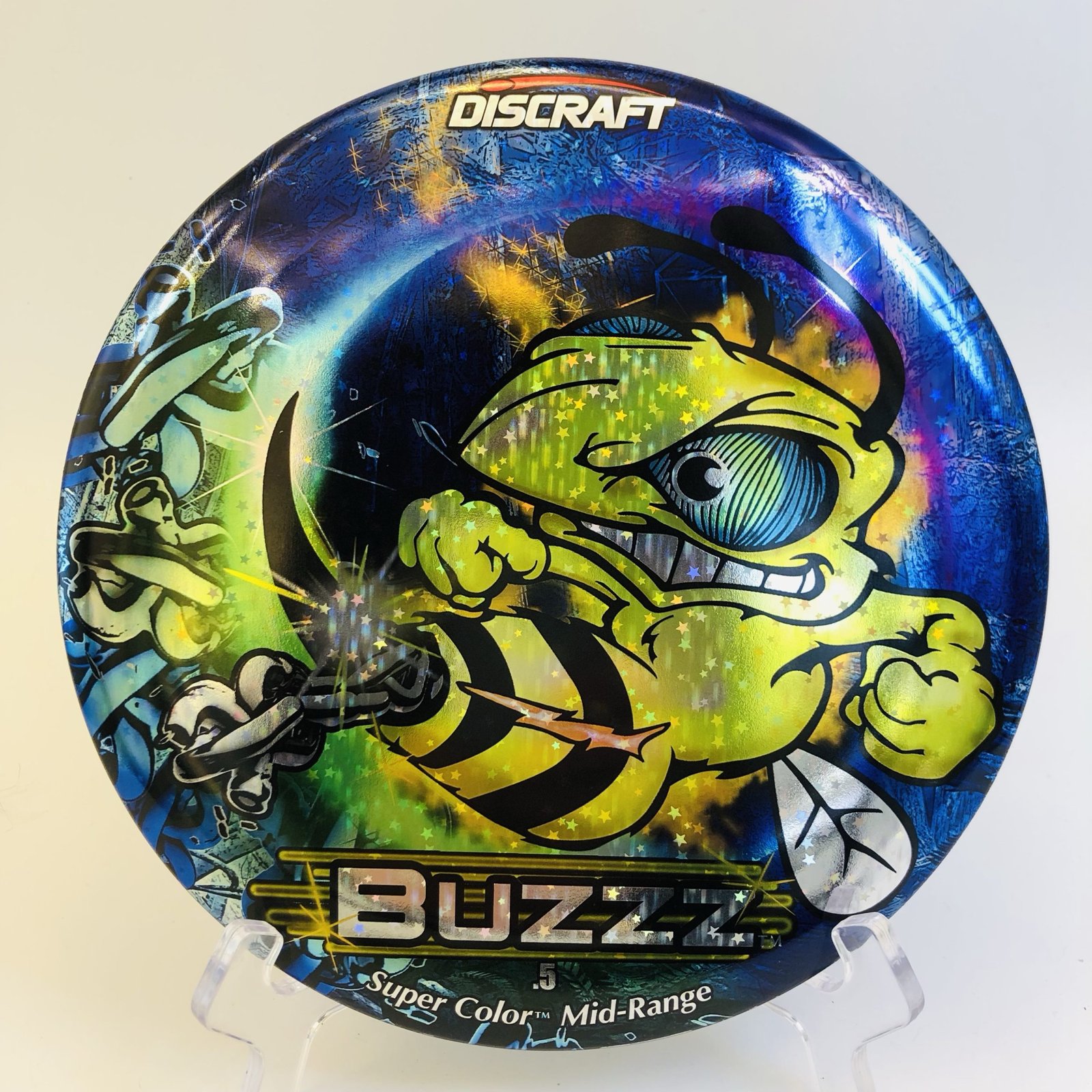 Disc: ESP Buzzz Profile: Flat – small domey Stiffness: Medium Condition: New (might contains some small storage wear) Color: black (back) Stamp: Full foil star prism stamp blue (see picture)