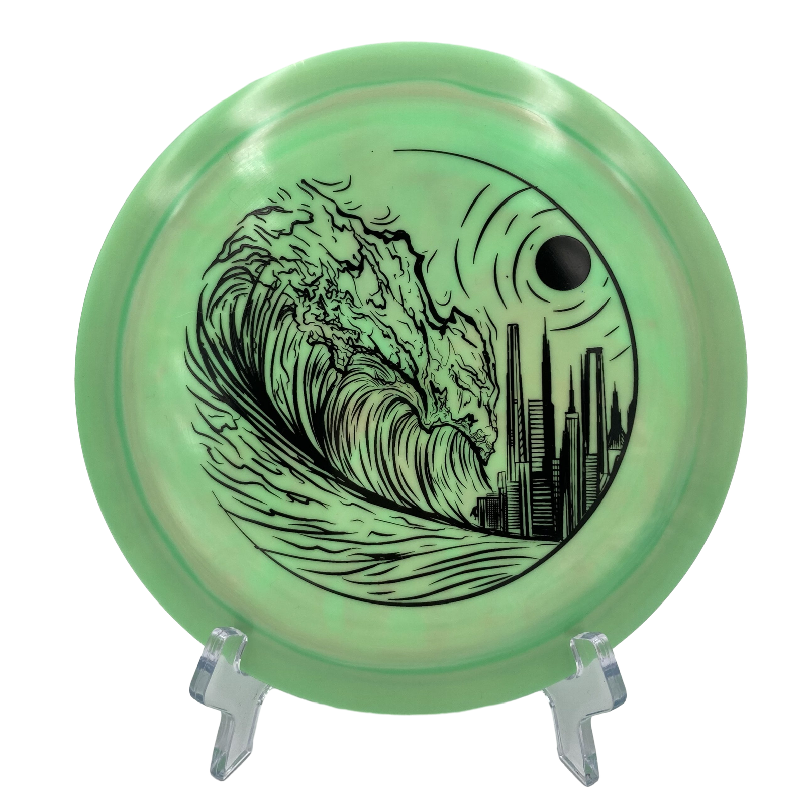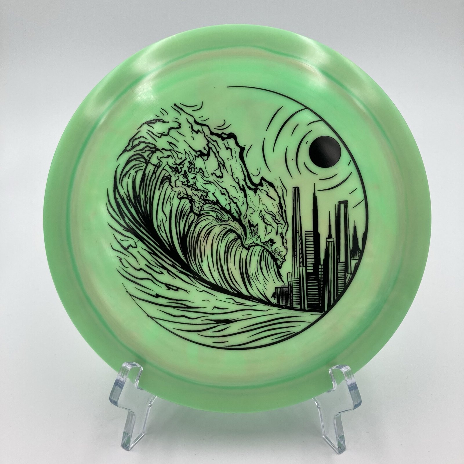 Crafted in premium ESP plastic, this green swirl beauty with a sleek black stamp features a medium flat profile and soft stiffness, ideal for players seeking a forgiving driver that feels great in hand. At 173-174g, it’s lightweight enough for controlled power but hefty for stability. Condition is new with just minor storage wear, ensuring top performance right out of the box. Whether you’re an intermediate golfer honing your distance or a beginner building confidence, the ESP SurgeSS is your go-to for bombing drives with style and accuracy. Grab yours and watch your scores soar! 🌟 #DiscGolfDriver #DiscraftSurgeSS