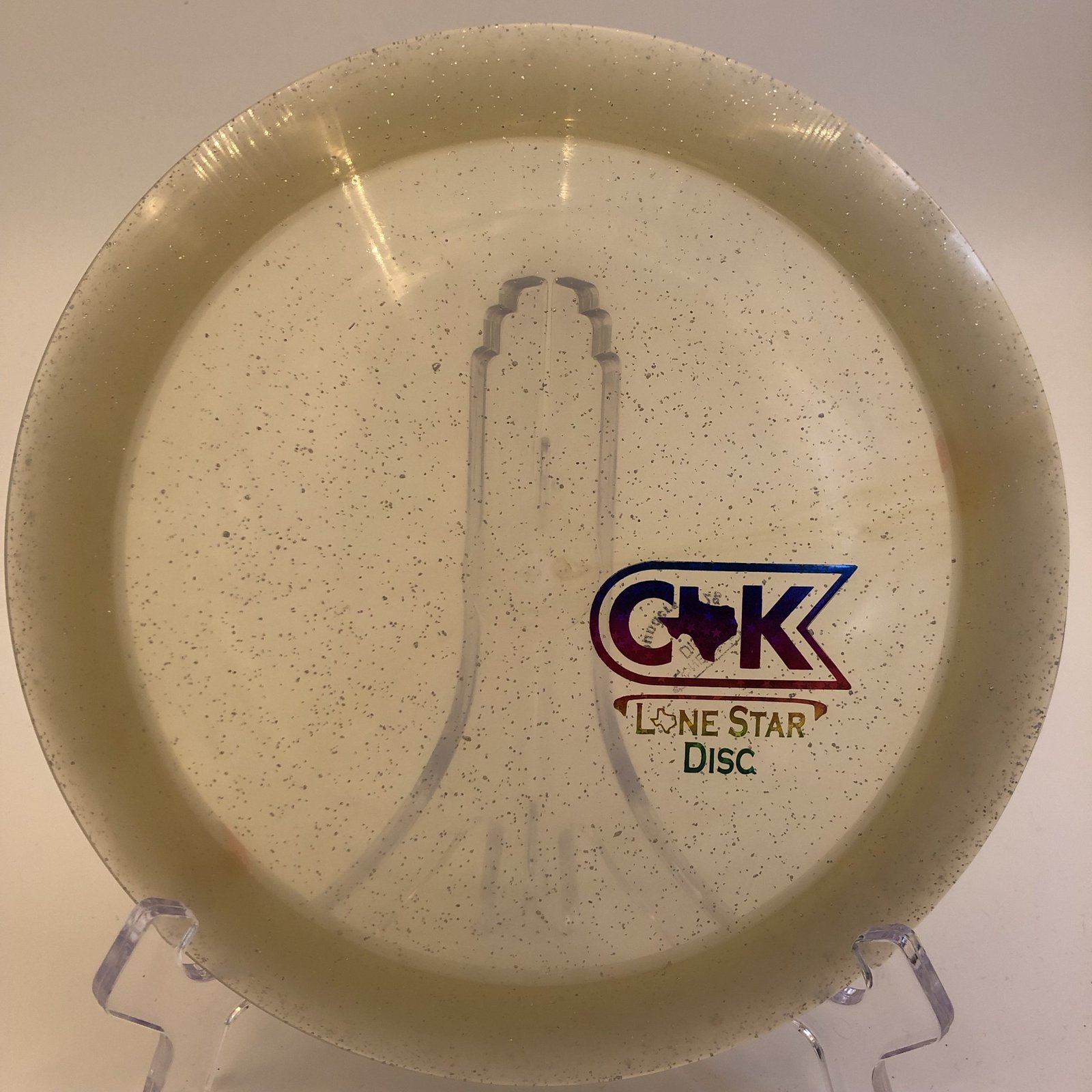 Disc: Lone Star Discs Founders Warbird Profile: domey Stiffness: medium Condition: New (storage wear) Color: gray transparent (see picture) Stamp color: rainbow shatter (See picture)