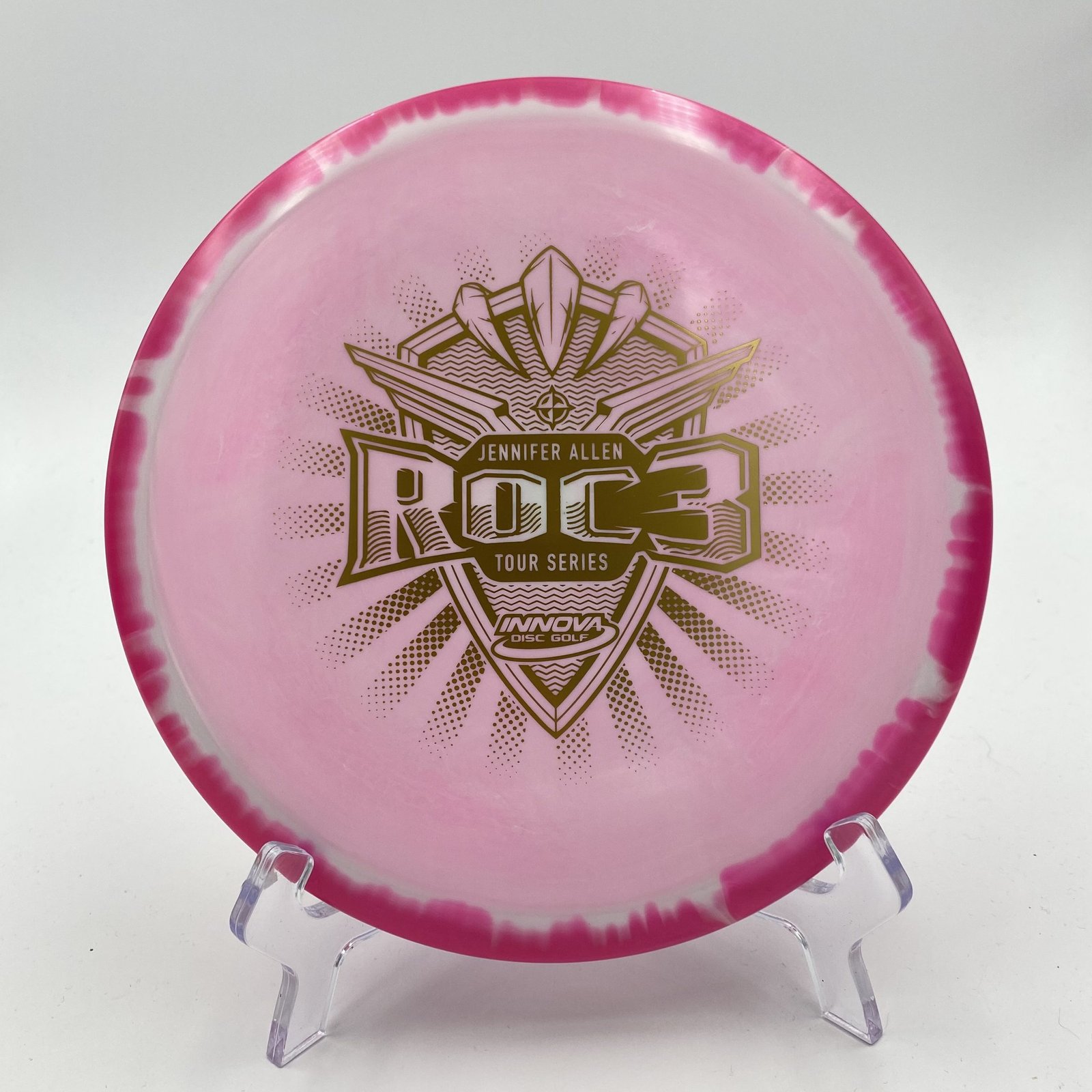 Introducing the Halo Star Roc3 – Jennifer Allen 2022 Tour Series (180g), a dynamic midrange disc that is sure to elevate your game! 🎉 With its sleek profile and small domey design, this disc offers exceptional control and precision on every throw.