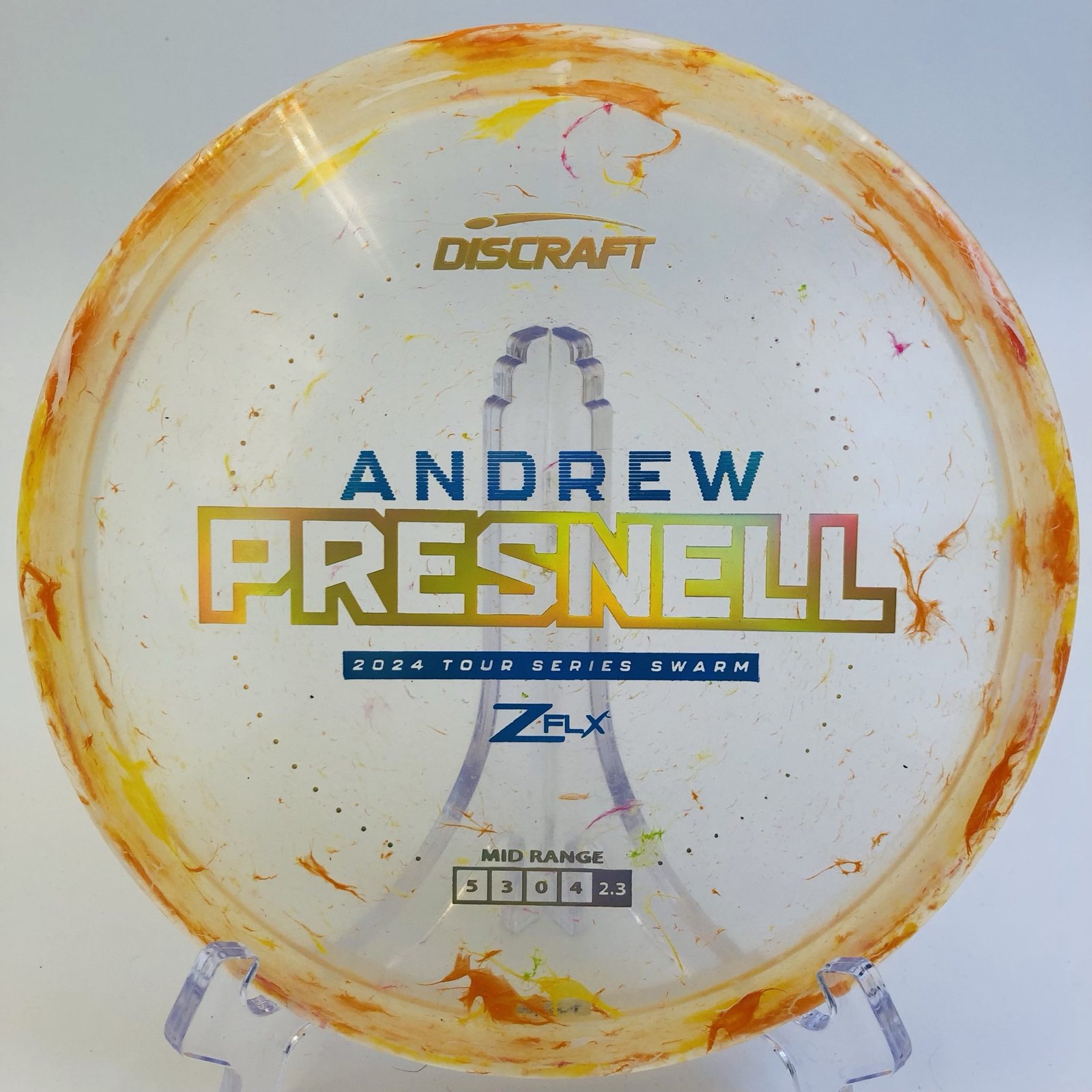 Available in a stunning transparent orange with a captivating turquoise blue and gold holographic stamp, this disc isn’t just about performance; it’s a beauty to behold! 🌟 Don’t miss your chance to grab this incredible piece of disc golf history and celebrate Andrew’s journey to Discraft’s Elite Team. Elevate your game and sport a piece of champion history today!