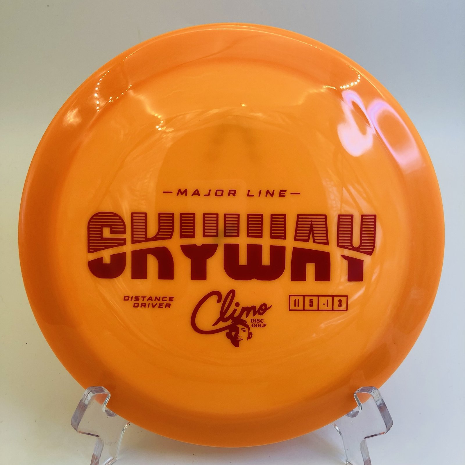 Visually stunning with its glossy finish and vibrant orange color, this driver does not compromise on grip. Made from premium plastic, it provides just the right softness for generating impressive spin. Get ready to elevate your disc golf game with the Climo Skyway – this is a disc built for champions! 🏆 Grab yours today and unleash your potential!