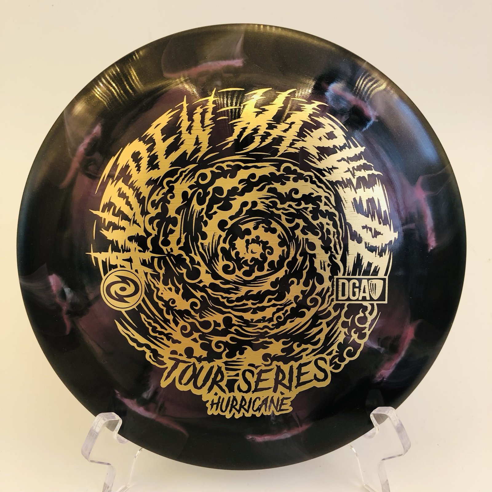 Whether you’re looking to enhance your distance game or seeking a trustworthy driver for tournaments, the Hurricane has got your back! 🥏 With a striking black and purple swirl design and a gold reflective stamp, not only will you perform well, but you’ll also look great doing it! Grab your PL Swirl Hurricane today and elevate your disc golf experience! 🚀 Price: $29.90.