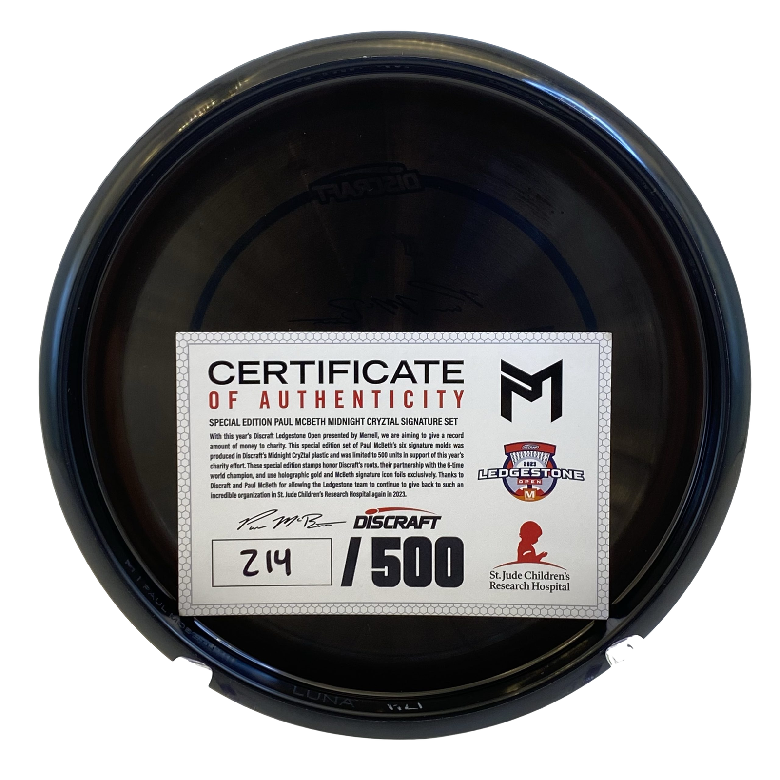 🌙 Introducing the St Jude Midnight Signature Paul McBeth CryZtal Set! This exclusive set of six premium discs is perfect for any disc golf enthusiast looking to elevate their game and showcase their style on the course. 🎉