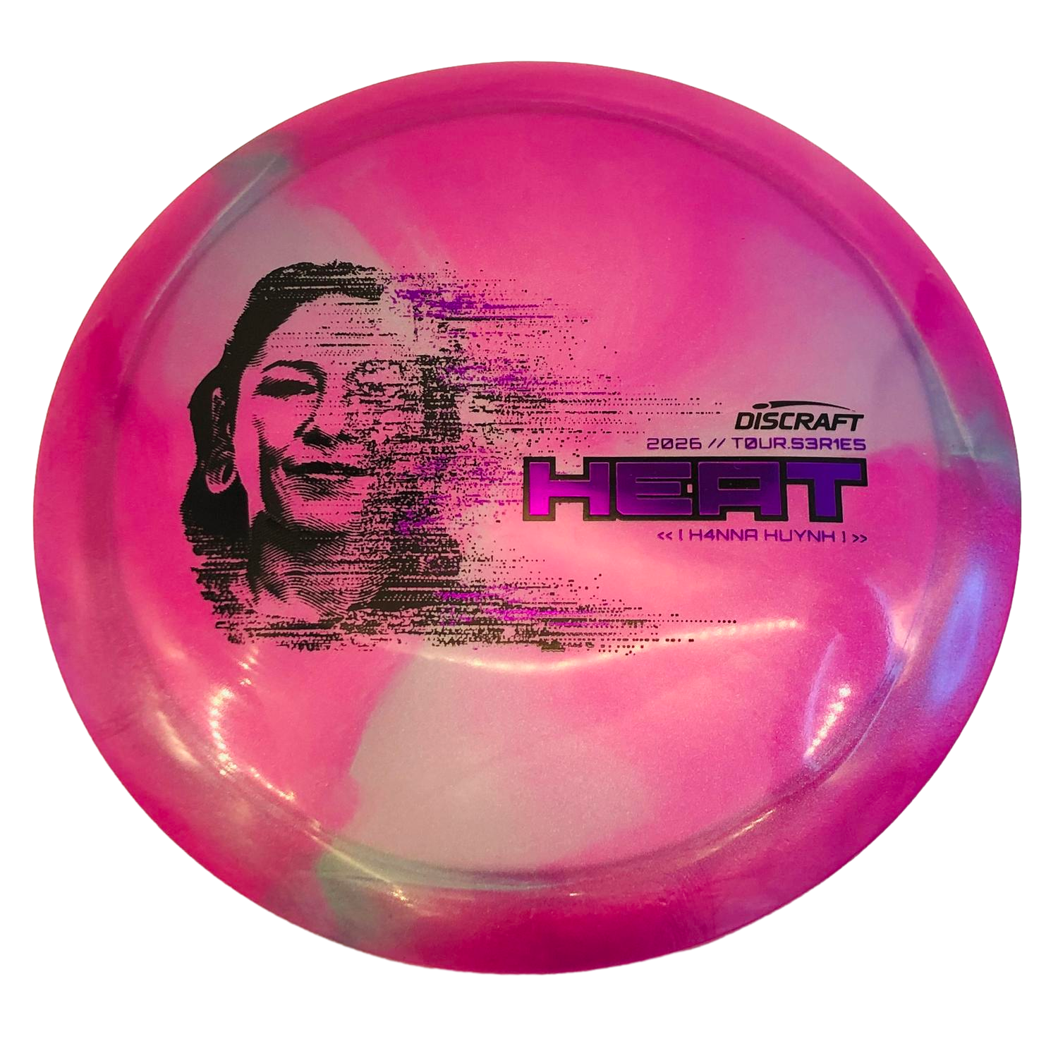 Introducing the **Titanium Big Z Swirl Heat** from Hanna Huynh’s 2026 Tour Series! 🌟 This stunning disc boasts a speed of **9**, glide of **6**, turn of **-3**, and a gentle fade of **1**, making it an exceptional choice for players looking to cover ground with ease.