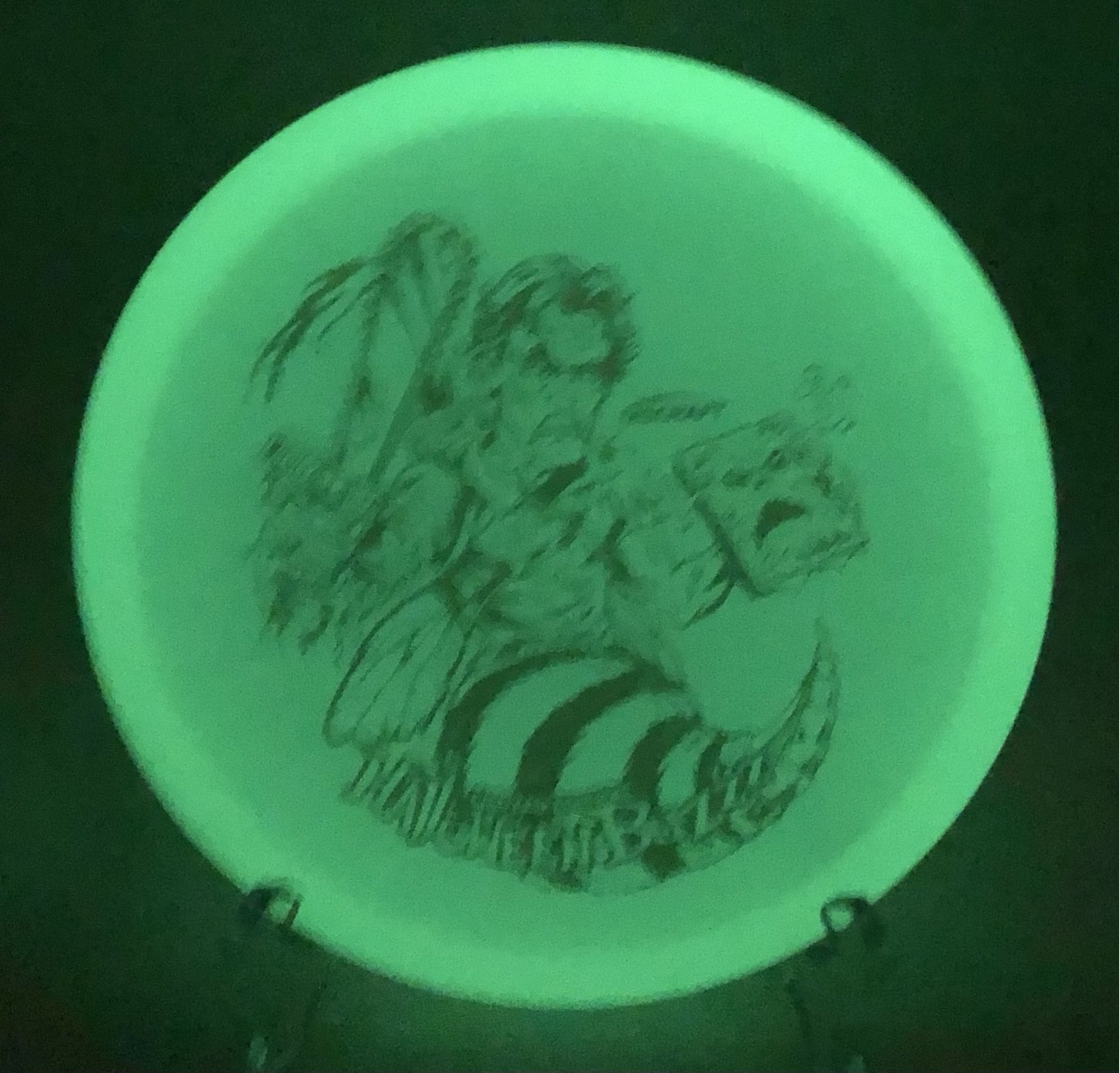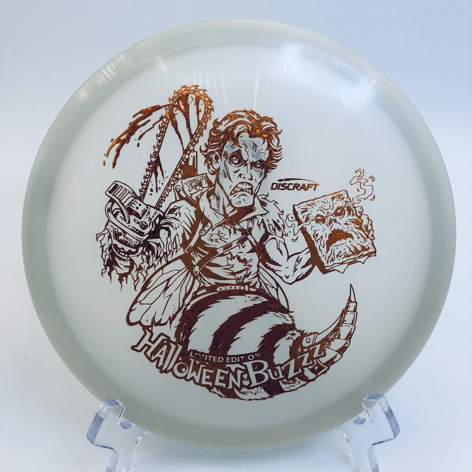 Disc: Discraft Z Nite Glo Buzzz – Halloween 2023 (177+g) Profile: Flat Stiffness: Medium Condition: New (small storage wear) Color: glo/white (see picture) Stamp: copper star sparkle reflective (See picture)