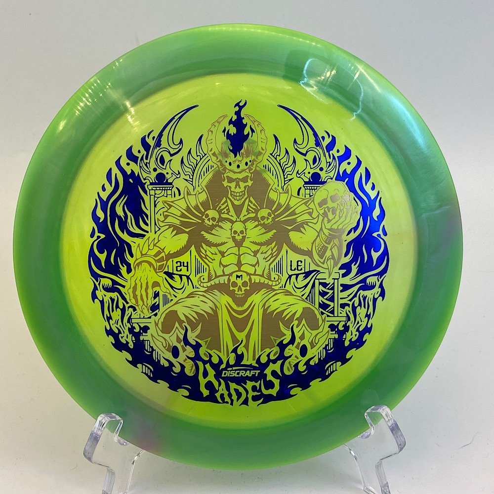 Crafted from premium Z Swirl plastic, this disc not only shines in performance but also stands out visually with its stunning green swirl design and a striking gold + blue shatter reflective stamp. Perfect for players looking to elevate their game, the Hades is suitable for intermediate to advanced disc golfers who value a reliable driver that can give them a competitive edge. 🏆 Whether you’re launching it off the tee or navigating tricky fairways, the Hades will be your go-to companion. Grab yours today, and let your throws reach new heights!