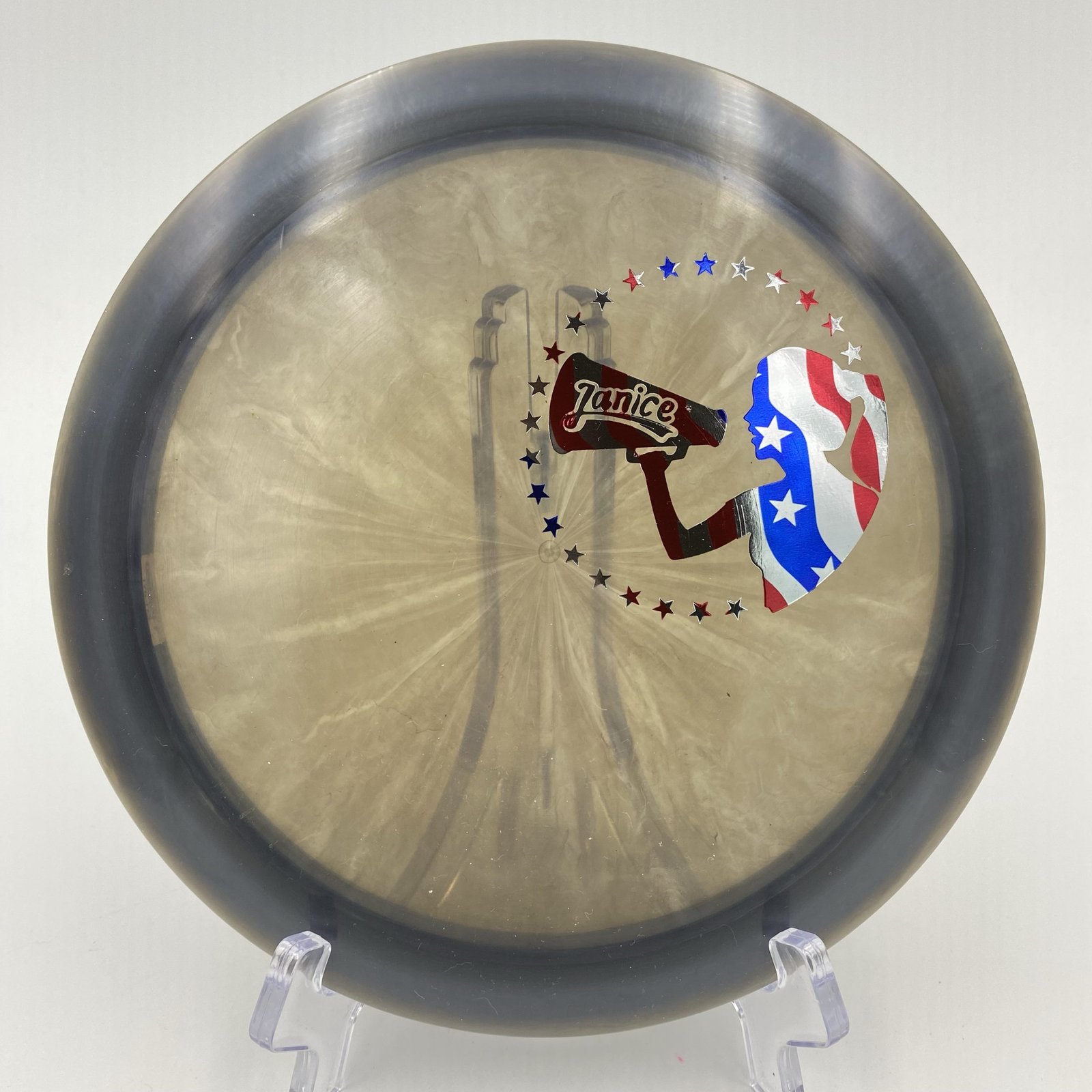 The Janice Thrasher features a stunning smokey-black color with a patriotic US flag stamp that adds a unique flair to your collection. This limited run disc not only looks great but performs like a dream. With its slight stability of 0.4, it’s fantastic for achieving those long-distance throws with some controlled turn, helping you to navigate those tricky doglegs with ease. 🏆